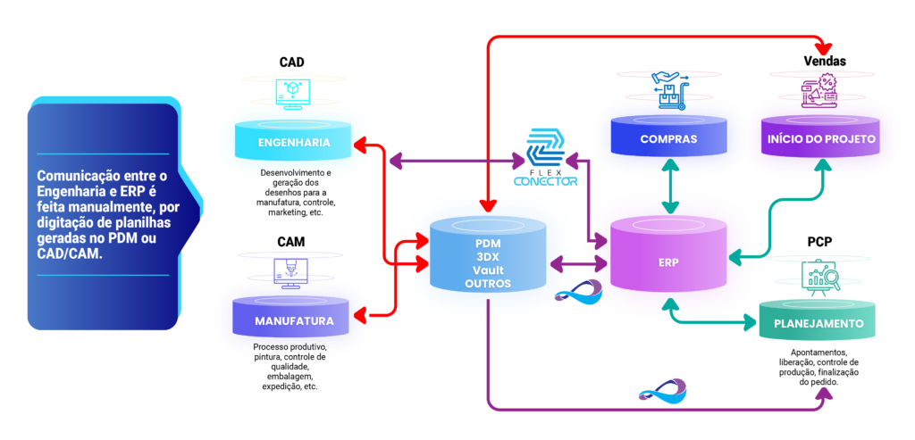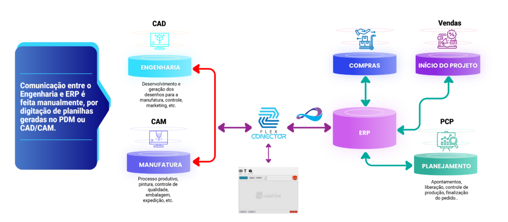 Sistema de comunicação entre os softwares de engenharia e produção com o ERP.